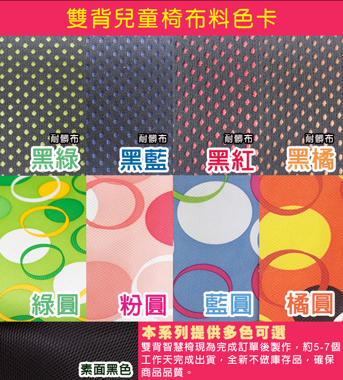 兒童椅款式,底色新增4色可選:綠圓、粉圓、藍圓、橘圓,