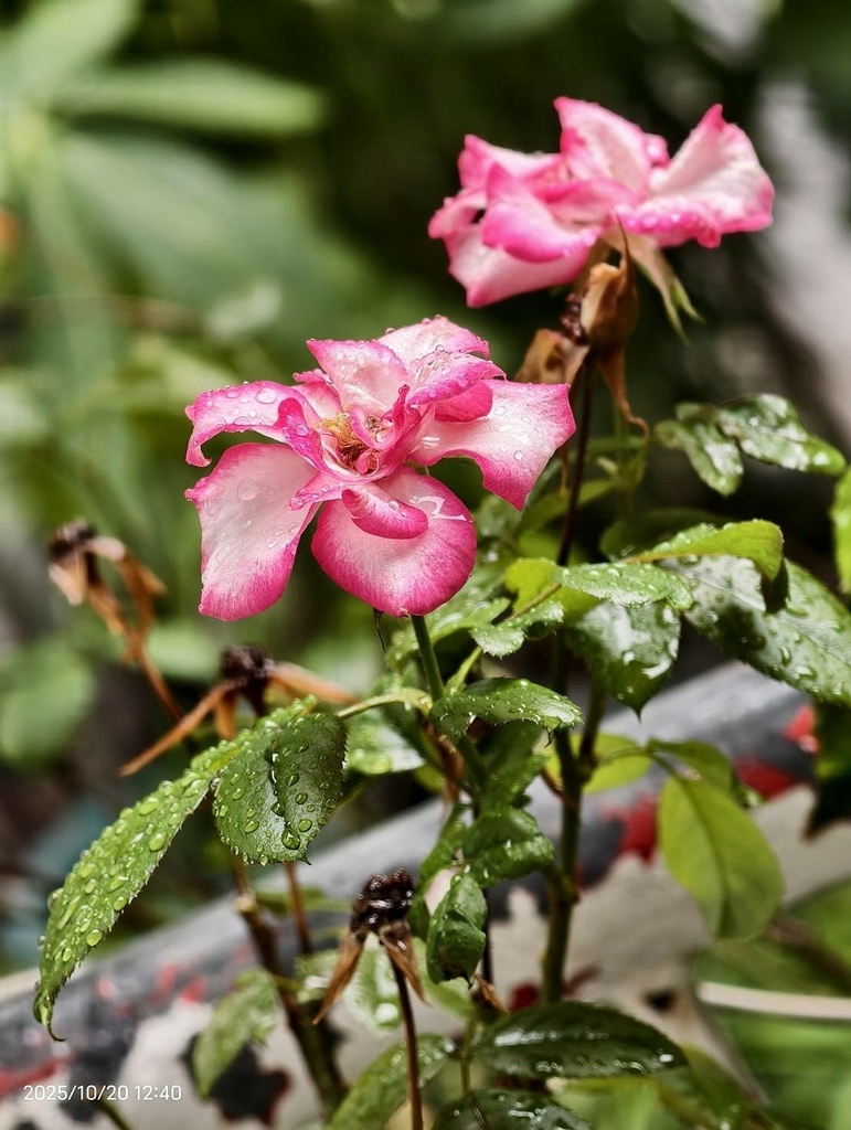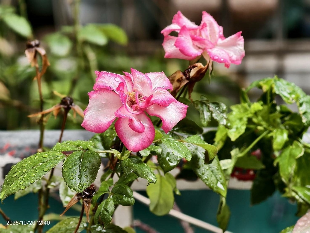 (風神颱風)外圍環流+ 東北季風共伴效應下,陽台小玫瑰依然滿開綻放 嬌豔欲滴