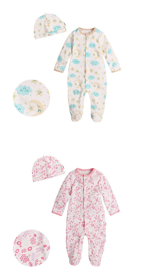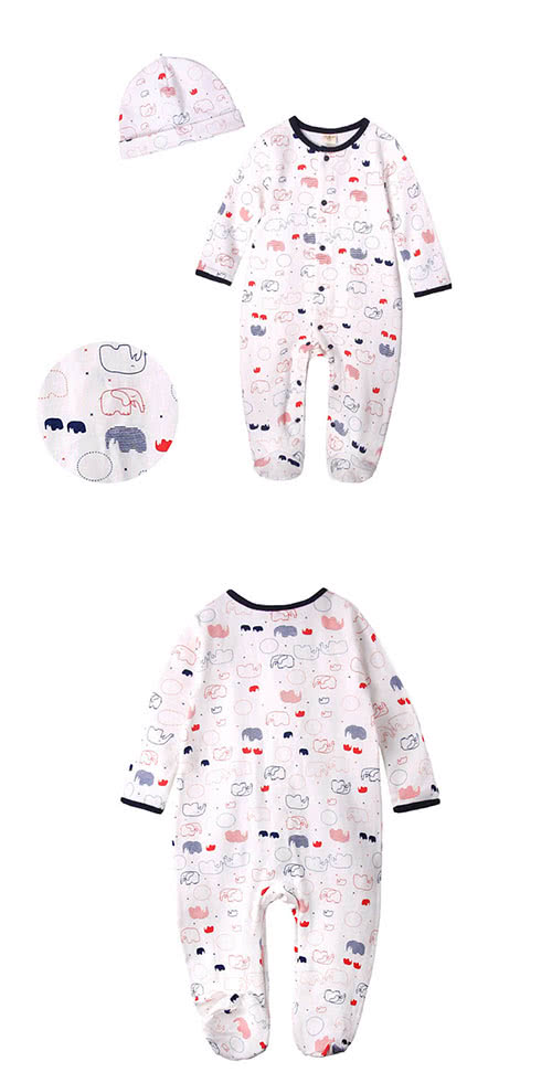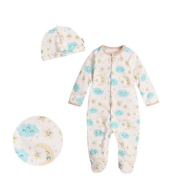 - 嬰兒純棉長袖包腳爬衣和嬰兒帽