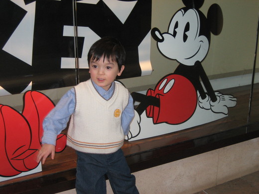 是呀 !!! 這小子超級聰明, 意見又一大堆. 上週末去逛Mall, 經過DVD店, 當他一看到 "Astro Boy"DVD時, 馬上指著"Astro Boy"的DVD, 並說出: Mommy, Daddy, I want to watch "Astro Boy". Can we buy that? 我和他老爸還不知道有這卡通呢?? 我想八成又是從電視上看到兒童節目的廣告.