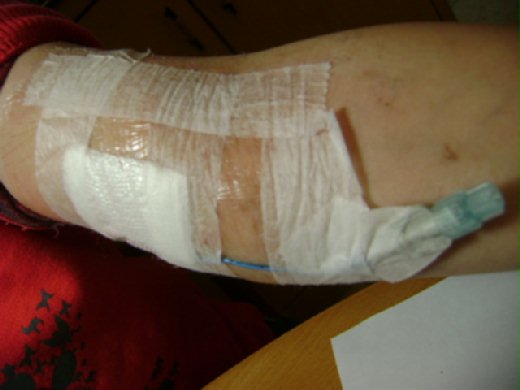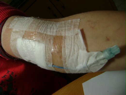 剛裝置身體內 一天換一次藥 之後每三天換一次藥 )