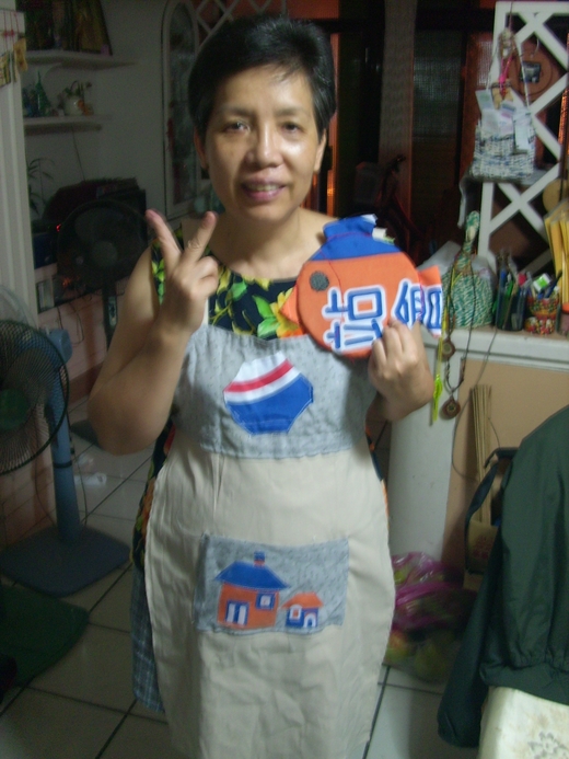 利用一些零頭布,做了一件圍裙和一個桌墊,誰不是精品,手工又很粗糙,卻是我發了一整個下午和晚上的時間,才完成的,最重要是圍裙穿在身上,感覺變瘦了。