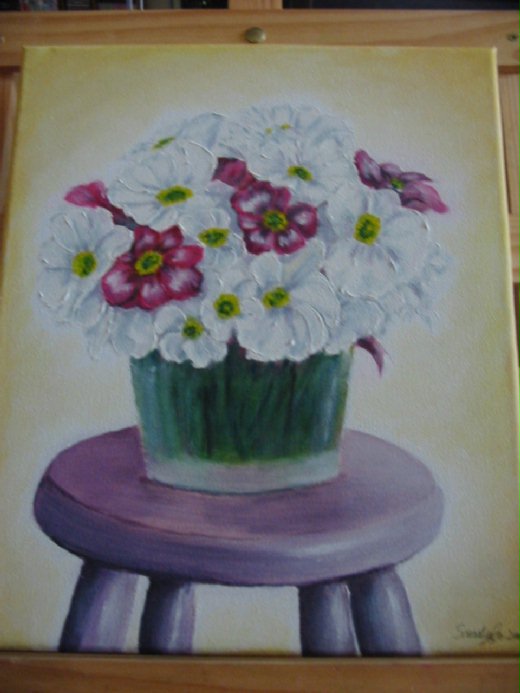 唉~ 不知要等到何時~ 於是乎就自己先開始畫了~ (等mayo等到蚊訓啦~) 借用了媽媽的畫架跟顏料,就開始畫啦! XD