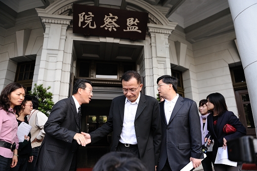 民進黨立院黨團副書記長高志鵬今(14)日陪同蘇治芬縣長的家屬前往監察院,舉發檢調在拘提蘇治芬縣長時違反程序的種種作為,要求監察院立即進行調查,阻止國民黨持續操控司法來進行政治鬥爭。