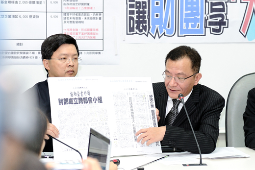 高志鵬委員拿出數份十年前的報紙指出,最近馬政府所提的多項紓困方案,內容和十年前報載的大同小異,包括了要協助企業貸款展延六個月、協調銀行辦理融資、挹注信保基金與提撥郵政儲金給企業融資…等。連主導紓困的財經官員都是同一批人,讓人分不清楚看的究竟是十年前的還是現在的報紙。蕭萬長、邱正雄、尹啟銘等財經官員,過去捅了簍子卻不用負責,如今原班人馬又要來故技重施,老百姓怎麼可能再一次的信任他們?