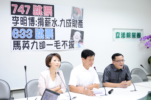 立委陳亭妃則說,馬英九的633政見跳票,「競選時說跳票要薪水減半,現在沒有看到任何動作,甚至總統府的發言人一直幫他塗脂抹粉,對台灣人民是一種交代嗎?」