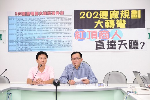 高志鵬委員指出,今年四月間,郭台銘曾說:「有兩個行業我一定會進去,進去我們會贏,一個是房地產、一個是金融業,但是我進去的做法,跟他們一定不一樣」。若介入202廠搬遷案,就是郭台銘跨足房地產的做法,那的確很「不一樣」。此外,今年三月初,郭台銘宣布跨足生技產業,行政院在三月下旬馬上就推出生技起飛計畫,由國發基金出資40%成立600億的大型生技創投基金。馬政府與特定財團間的互動,不過是換了新面孔的老國民黨復辟。特別是郭台銘曾擔任「新台灣人基金會」董事,與馬英九的關係非比尋常,其中是否涉及利益輸送?馬英九應說清楚。