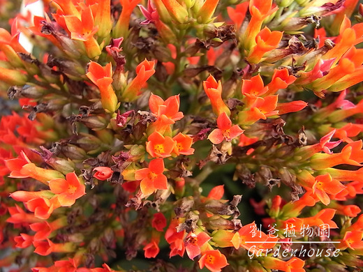 長壽花又名聖誕伽藍菜、紅落地生根,為景天科伽藍菜屬植物。長壽花為多年生肉質草本。莖直立,株高10~30釐米。葉對生,葉片卵形具光澤長,深綠色。圓錐狀聚傘花序,花色多為紅、黃、橘、粉紅、紫色等,植株易於室內維護,受到消費者歡迎。
