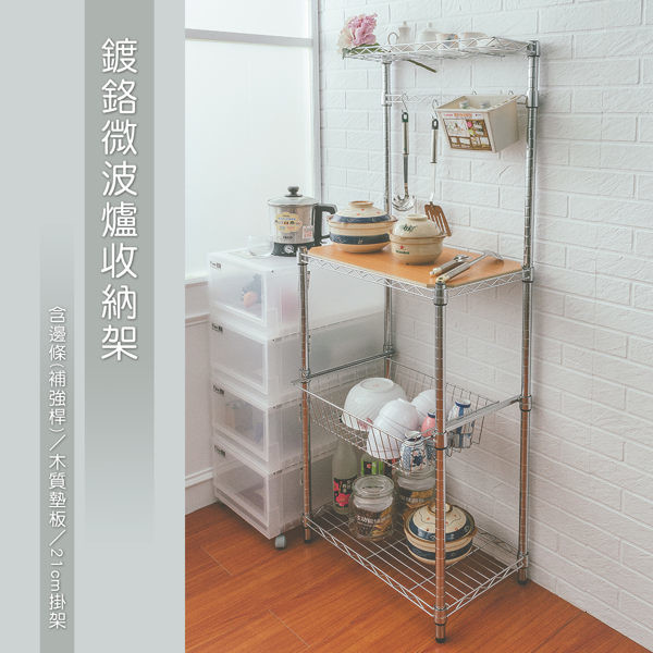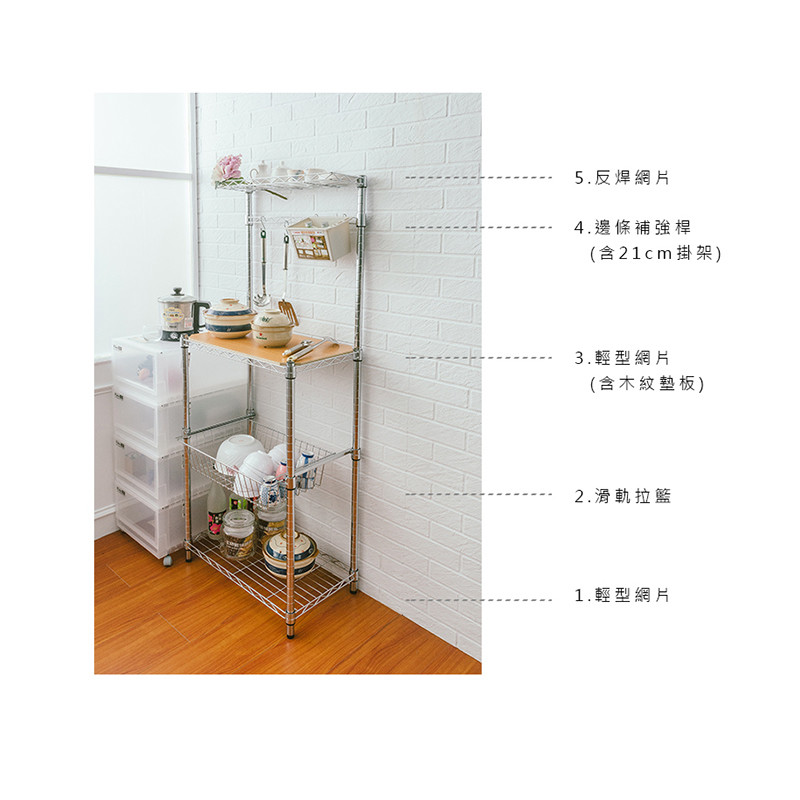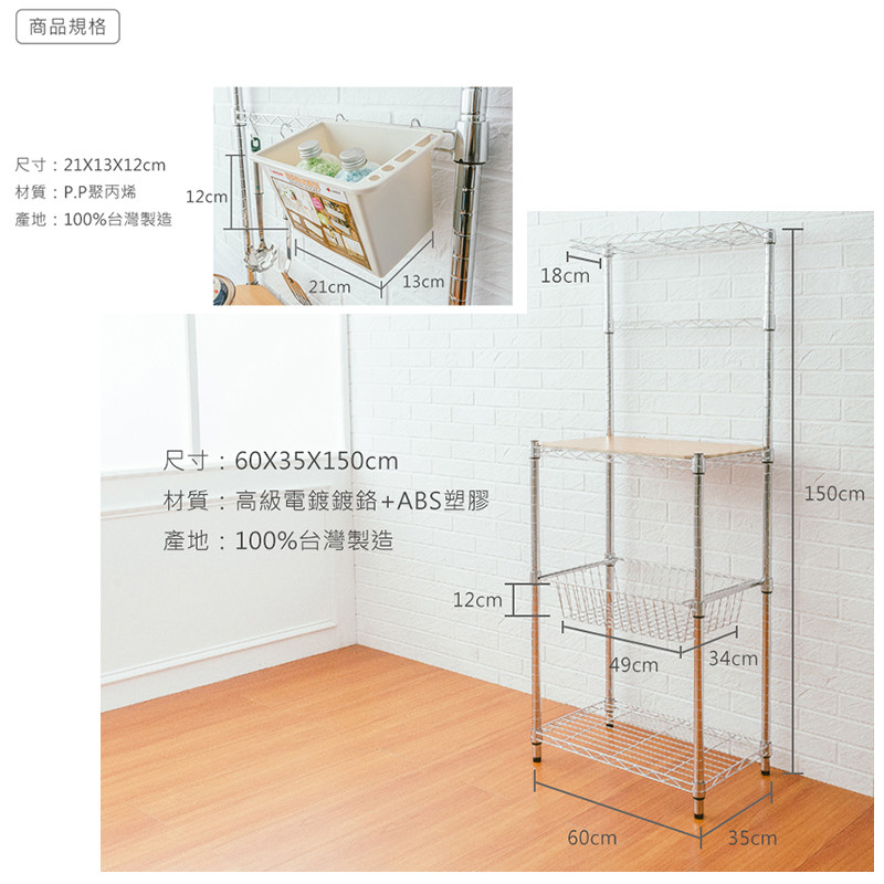 dayneeds 鍍鉻廚房置物架〈附木質板1片+邊條+21cm掛架〉SBB6035150CR-WSV