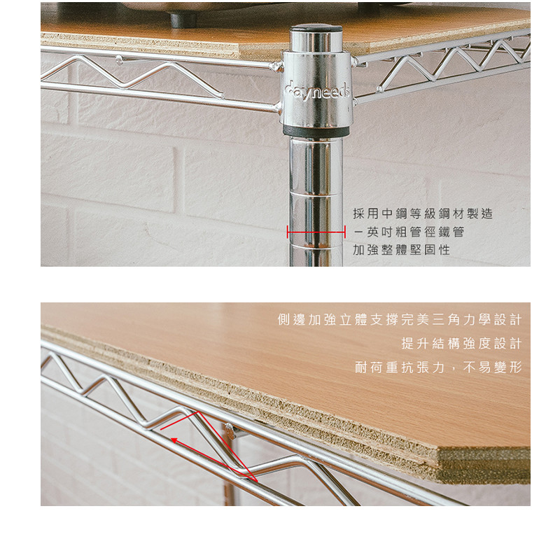 【開箱】dayneeds 鍍鉻廚房置物架〈附木質板1片+邊條+21cm掛架〉SBB6035150CR-WSV