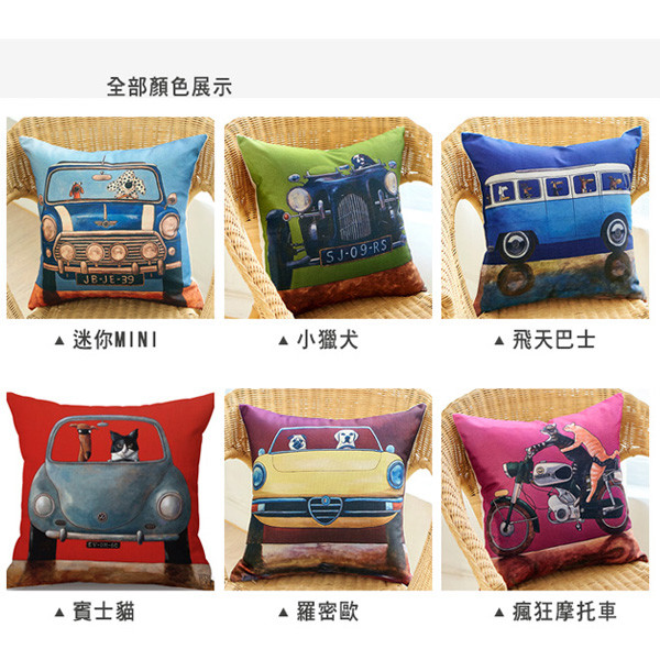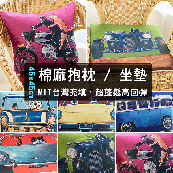 復古老爺車 愛快羅密歐 喵星人大募集 棉麻抱枕/坐墊-多款任選(可選擇坐墊或抱枕)