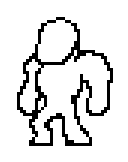 我故意選擇很重的深色和很淡的淺色來畫Musclehead,但不是一定要用這種方法,只要記得不要使用太多相似的色值~反正當sprite在動時沒有人會去注意到太多相似色值,況且那也不會比較漂亮。畫素構圖的優點就是能夠賦予周圍其他畫素新的意義,所以記得讓每個畫素擁有各自的特色……沒錯!畫素也是有學問的!