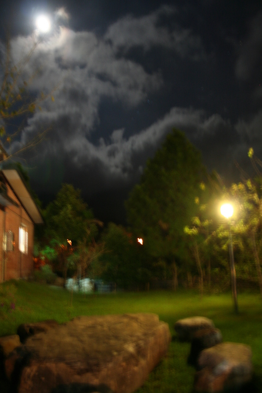 夜幕低垂 濃霧瀰漫 街燈依稀照光影