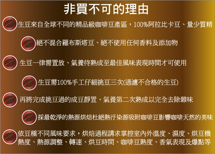 為了讓消費者能夠喝到風味最佳的咖啡我們接單後再進行烘培