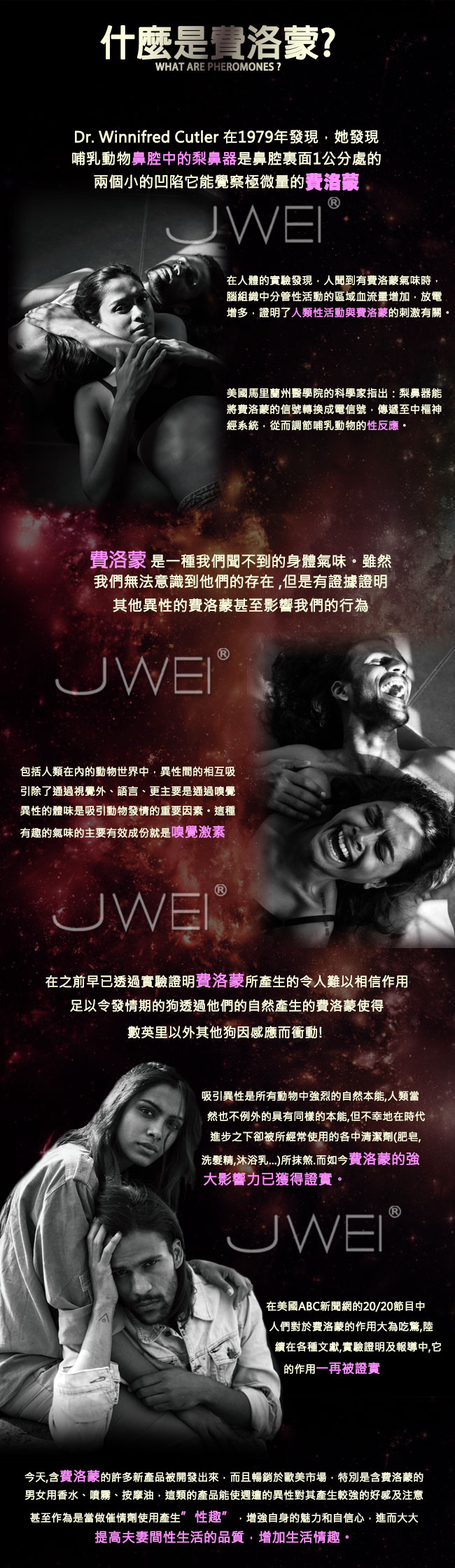 | 費洛蒙香水神奇的魅力將帶您進入一個自由、激情、浪漫的夢幻境界。它能讓周圍的人感受到愉悅而產生微笑,更富有 詩意和情趣,讓您散發最魅力性感的氣息。