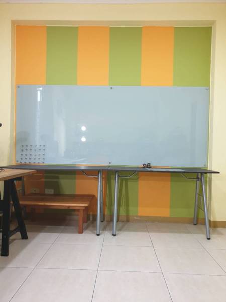 耶!書房的磁性白板終於安裝好了!!這次工程小六彬完全掌握磁玻的選色主權,否決了製圖爸與國文媽喜歡的顏色,一意孤行堅持己見,結果竟是出奇的好。右側的優白色比清白色磁玻更顯質感,主要是讓彬彬畫圖、分析、書寫、計算、自由運用;正前方的淺灰色澤,增添了整個書房沉穩氣質,還可以磁吸所有通知書、考試表、學習memo、日程計畫......,完工之後,書房的美觀與功能性有了極大幅度的提升,相信這個空間一定能暖心陪伴彬彬熬過未來無數個苦讀的夜晚......。
