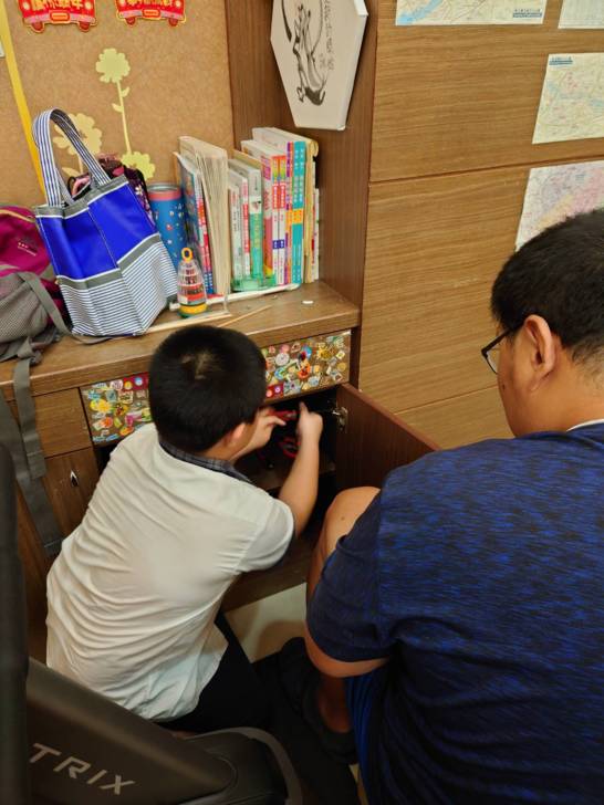 兩個孩子氣質完全不同,如果櫃門是壞在小六彬手上,他只會嘻皮笑臉地把這件事丟給製圖爸處理,而小四昇卻願意趴著跪著滿頭大汗地試圖修理……。一個有能力卻只做對自己有好處的事情,一個總是失誤後想盡辦法處理卻大手大腳不小心就越幫越忙越做越錯的寶貝蛋,身為父母,對這樣兩個孩子保有充分的愛並不困難,但是要讓這兩個孩子都感受得到同樣的重視卻需要智慧,今晚,趁著小六彬補習,帶著小四昇去商場買料材回家一起修理櫃子吧!