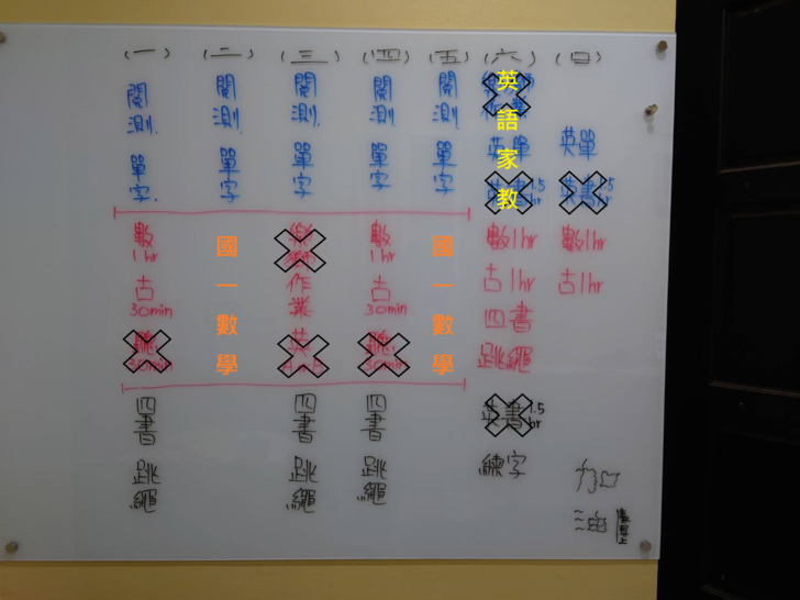 3.基於對製圖爸的尊重與目前規劃,國一數學班確定是要上課了,那勢必得要犧牲樂獅,但是犧牲樂獅也不能犧牲英語啊!所以國文媽千求萬求靠關係靠人情,終於覓得英語家教,打算針對小六彬的弱點加強指導英文文法以及未來英檢規劃。
