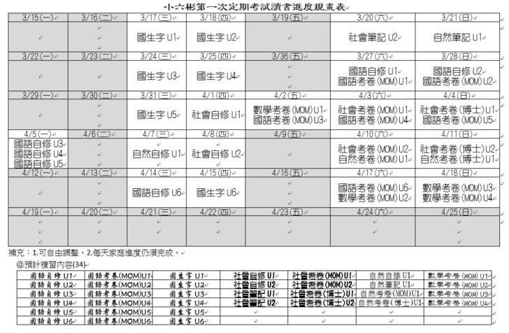 (ㄟˊ ...總覺得他的學習計劃表好像變輕鬆了