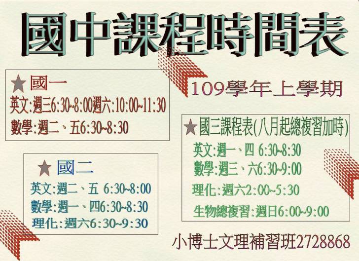 2.週三1830-2000英文文法、週六1000-1200國中英語。