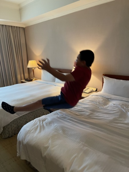 今天完全沒有行程,在飯店裡,國文媽與小六彬享受難得的悠閒,國文媽寫文章時,小六彬就賴在浴室裡唱歌泡澡;小六彬寫日記時,國文媽也慵懶地泡熱水玩手機,兩人的身心都得到短暫地舒緩。(可是,前一天累積的疲倦感可沒這麼快消失啊!)