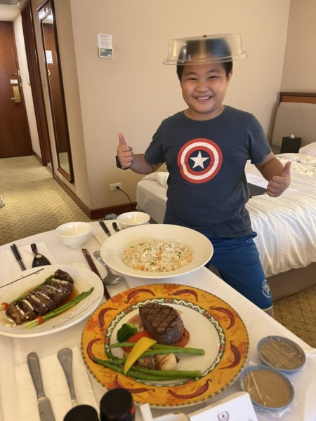 一到長榮,立刻被溫暖的服務舒緩所有傷痕。台中長榮飯店,17年前,國文媽第一次入住,當時南北奔波考教甄,挫敗感不停累積的壓力讓國文媽來台中考試時直衝長榮飯店,那時候就曾被暖心的服務療愈,隔天大北區的甄試果真順利考上……,17年後的今日,帶著沮喪的小六彬重回故地,小六彬的臉龐竟也瞬間被服務的大哥哥點亮。(當然,今天的晚餐更是”蛋糕上的完美糖霜”啊,跟17年前的鐵板燒一樣,但這……又是另一個故事了……。)