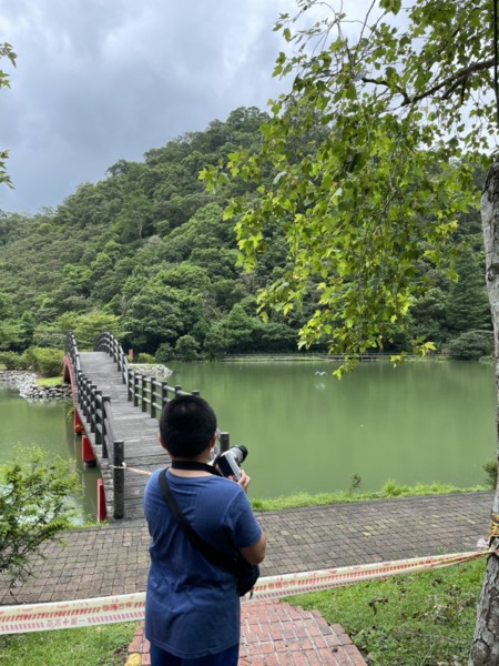 早上我十點才起床,因為我昨天晚上看NBA決賽看到12點多,實在是太累了。今天要去新竹,我們先到了昨夜計畫好的望龍埤,那裡有一個非常漂亮的湖,還有很多座橋,但因為疫情的關係,都沒有開放,只能從外面欣賞。我們散步的時候正下著雨(颱風來了,大家請注意安全),風景顯得更詩情畫意,走完步道後,我們還有看到鴨子,牠們成群結隊的朝我走來,讓我拍照,真的很可愛,有一隻領頭鴨抬頭挺胸走在前面,其牠的鴨群跟在後面,就好像路隊長帶著其他同學一樣,真有趣!