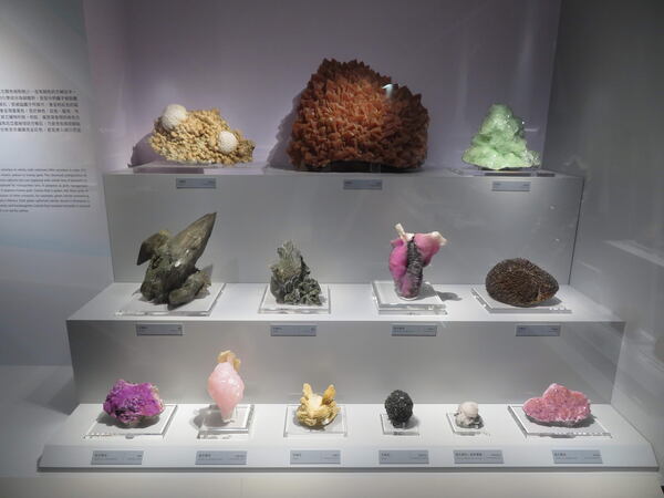 由代表45.5億年前的黑色大地的岩石開始8大單元:「礦物演化」、「礦物無所不在」、「晶體對稱之美」、「晶體色澤之美」、「臺灣寶藏」、「世界礦區-晶體大觀」、「礦物世界」、「礦物與生活」。貫穿三層樓的螺旋式展場設計,讓人彷彿走進了地底礦穴,能不斷的探尋挖寶。館藏五千餘件的標本中,挑選出1千7百多件精彩繽紛的晶礦寶石,清新亮麗地和觀眾們見面。