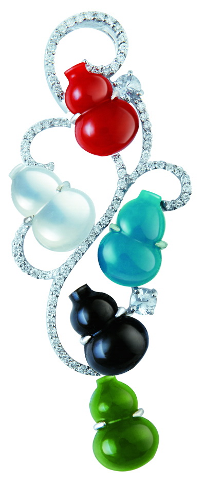 最近市場流行起五行為代表的癒療系珠寶首飾,運用白黑(藍)綠黃紅五種基底色彩的寶石代表金木水火土,藉著五行的平衡除障開運。寶石的色彩給予生活譬喻、想像、聯想的意象空間,無形的意念是行動驅使的泉源,寶石晶體散發大地自然能量的感應,讓人藉由精神的悸動,對彩色寶石輕輕的一觸或是視線的一撇,色身、感受、意識、思想、心行,轉換心念的力量油然昇起。讓色彩豐富的美麗寶石化去多事之秋的憂鬱,轉成心生喜悅心想事成的動力吧!