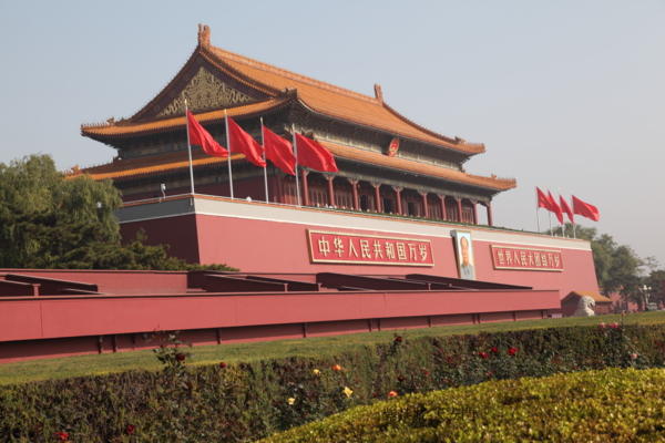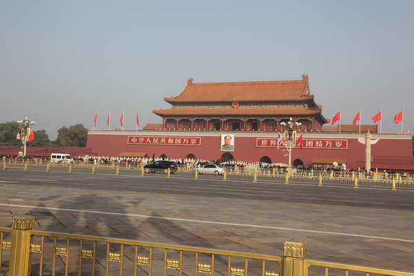 使節進入前門後,看到了清朝的第一道門,大清門(現址為毛澤東紀念堂),他發覺眼前的景物不一樣了.在此之前,北京城全是灰墻灰瓦,然而走過大清門,他看到建築物的顏色都是黃瓦紅墻,一條大道把他一直引向天安門.
