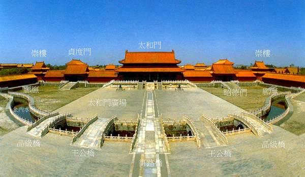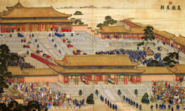 接著,使節又走過內金水橋,終於到達皇城.在見到中國皇帝之前,他還需要走過太和門(明代稱奉天門,後改稱皇極門.).追隨禮部官員走過太和門,看到了太和殿.太和殿建在一個高大的三層石臺階上.爬到石臺階上之後,外國使節折服的下跪了,跪的不是中國皇帝,而是中國如此輝煌的建築.