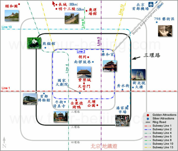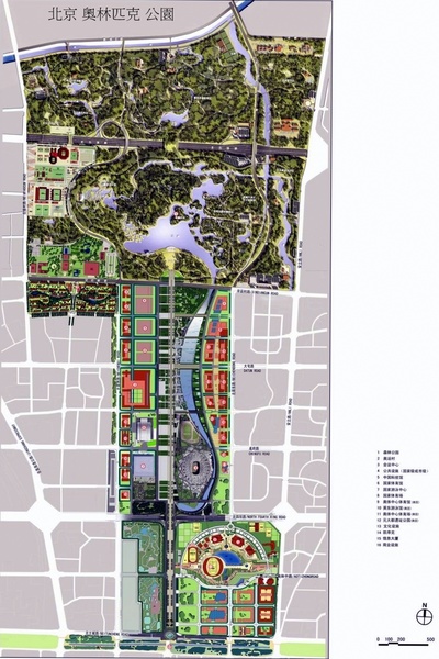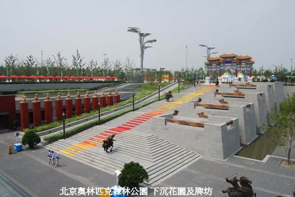 外國使節走過的,只是北京中軸線很小的一部分.現在,北京奧運會場館的建立,使北京的中軸線向北延伸,長度達到了25公里.中軸線的起點永定門開始,一直引領你沿著中軸線從古老走向現代北端的奧森公園.