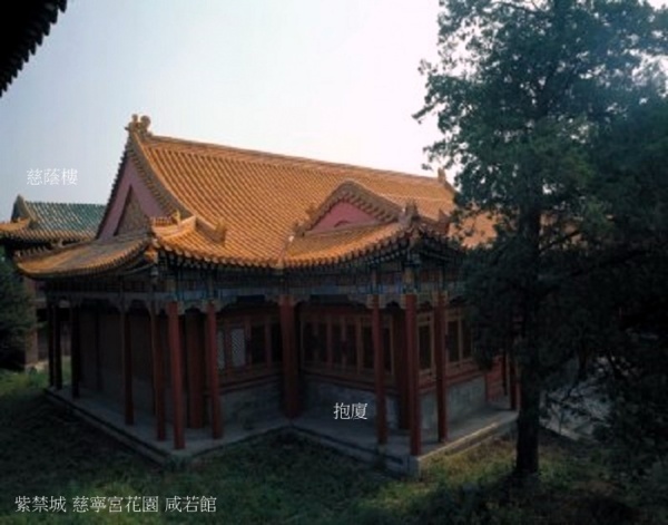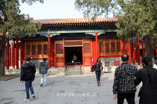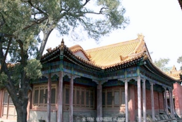 咸若館位於慈寧宮花園北部中央,是園中主體建築,為清代太后、太妃禮佛之所.明代初建時稱咸若亭,萬曆十一年(1583年)更名曰咸若館.清乾隆年間先後大修、改建,即今所見形制.