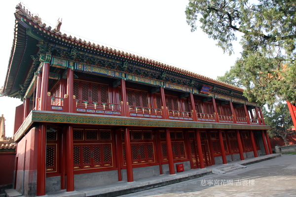 吉雲樓位於慈寧宮花園內咸若館西側,坐西面東,面闊7間,東與寶相樓相對.明代原為咸若館西配殿,清乾隆三十年(1765年)改建為二層樓閣,三十六年(1771年)懸滿漢文“吉雲樓”匾.