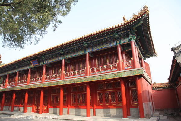 整座建築灰瓦、青磚,不施斗栱、彩畫,裝飾樸素,色彩淡雅,在慈寧宮花園濃蔭茂木的掩映中,頗具江南建築的情趣.堂前楹聯“梳翎閑看松間鶴,送響時聞院外鐘”,生動地將建築的意境與慈寧宮花園超凡脫俗的情調融匯起來.
