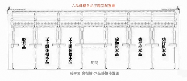 六品佛樓就是按照此六品內容分別供奉相應的佛像、佛經、法器及佛塔的建築.它體現了乾隆帝對於藏傳佛教格魯派顯密兼修方式的認同,是豐富龐大的藏傳佛教學和神系研究的寶庫.