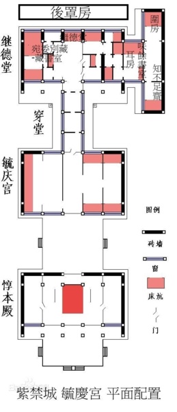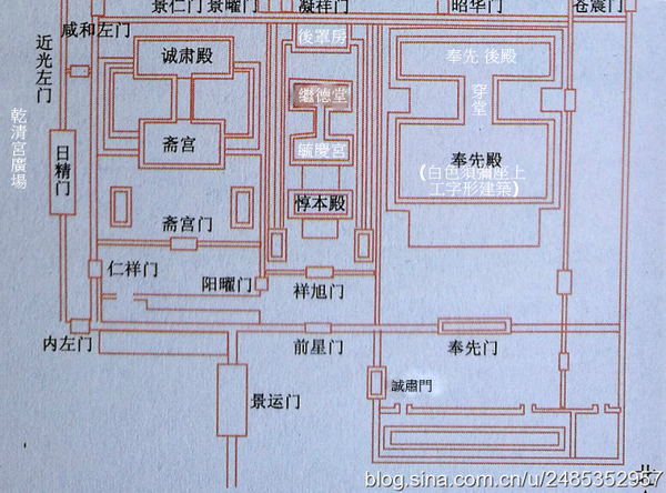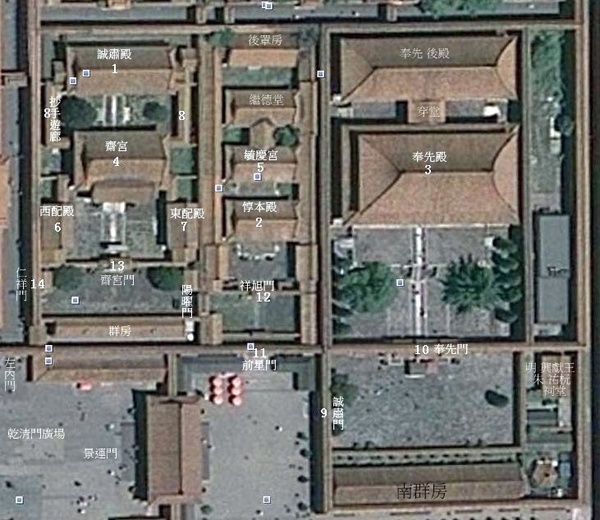 返內廷’乾清門’前廣場,東出景運門北進前星門參訪毓慶宮’齋宮.東入誠肅門可達奉先殿.輾轉再東行就是乾隆太上皇的遊樂場-寧壽宮區.((編輯自網路)