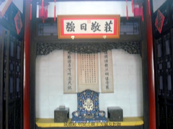 毓慶宮的前殿叫做惇本殿,乾隆皇帝題寫的匾額日"篤祜繁禧",對聯是"祖德敬而承,仰思堂構;天恩引以翼,遠逮雲初."這是乾隆六十年公佈以永琰為皇儲時,賜給他的寄語.嘉慶即位以後,又將乾隆四十四年賜給他的"履道安敦"之匾,及"篤學在躬行,宜循實踐;淑心惟理順,克務懋修"的聯語,移到毓慶宮懸掛.永琰得皇儲即因誠實’務實.