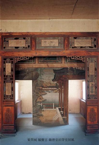 第三進院東西兩側各有圍房20間,延展至第四進院,正殿即毓慶宮,建築為工字殿.前殿面闊5間,進深3間,黃琉璃瓦歇山頂,前簷明間開門,次間、梢間為檻窗,後簷明間接穿廊與後殿(繼德堂)相通.穿廊面闊1間,進深3間,東西兩側均為檻窗.後殿面闊5間,進深3間,黃琉璃瓦歇山頂,前簷明間與穿堂相通,廊簷安小板門,次間、梢間為檻窗,後簷亦為檻窗.後殿室內明間懸匾曰“繼德堂”,西次間為毓慶宮之藏書室,嘉慶皇帝賜名“宛委別藏”,東山牆接懸山頂耳房1間與東圍房相通.東耳房內懸嘉慶皇帝御筆匾曰“味餘書室”,其東側圍房內“知不足齋”匾亦為嘉慶皇帝御筆.毓慶宮內裝修極為考究,尤其是後殿內以隔斷分成小室數間,其門或真或假,構思精妙,素有“小迷宮”之稱.或許皇帝懂得小孩兒寓教於樂.最後一進院內有後罩房,面闊5間,進深3間,黃琉璃瓦懸山頂,前簷出廊,明間開門,次間、梢間為檻窗,東西兩側有耳房,與東西廡房轉角相接.