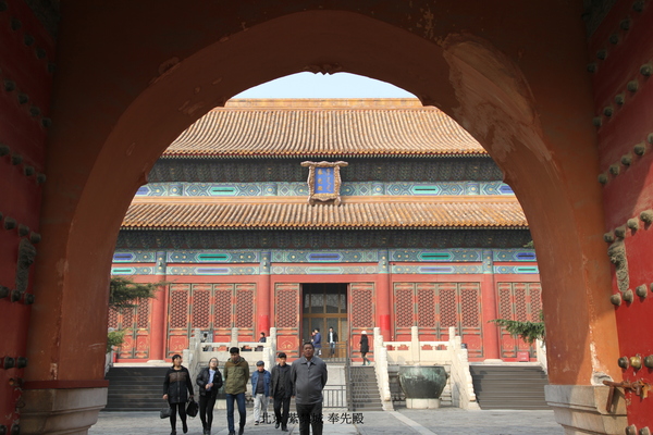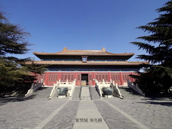 奉先殿,位於紫禁城內廷東側,是明初時期創立的,在順治帝的時候,得到過大修,裡面也是供奉著歷代皇帝的排位,是屬於皇室的家廟.萬壽聖節和元旦國家大慶,就在前殿祭祀.一般的小節日,如元宵,清明,中元,這些節日都在後殿上香行禮.徽號、冊立、冊封、御經筵、耕耤、謁陵、巡狩、迴鑾及諸慶典也在後殿.奉先殿裡面供奉著清朝33個牌位,還有一些珍貴的供品,現在的奉先殿已經改為了鐘錶館.奉先殿和太廟不同是奉先殿一年可祭祀多次,而太廟並不是想去祭祀就去祭祀的,就連皇帝也不行,就是一個是自家的一個是國家的.