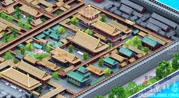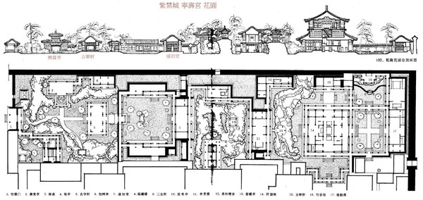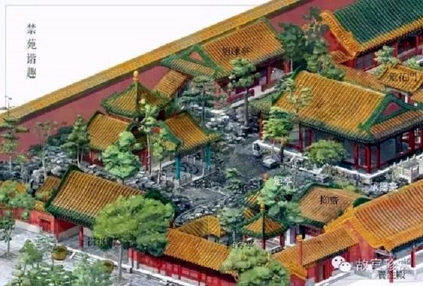 寧壽宮花園南北分隔成四進院落,每一院的佈局各具特色.