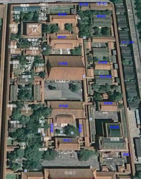 位於甯壽宮花園第三進院落.建於清乾隆三十七年(1772年),嘉慶、光緒年間先後修葺.