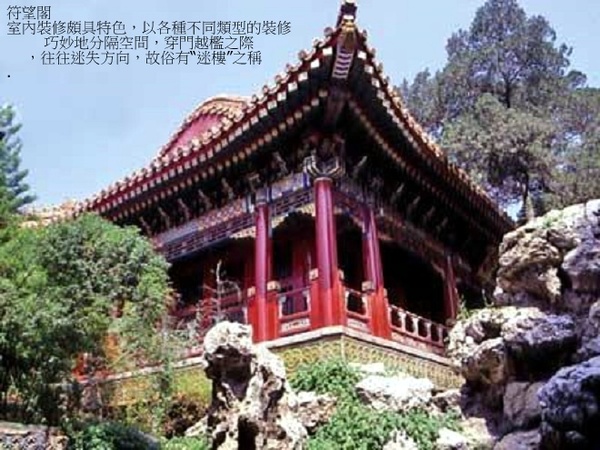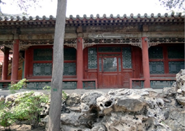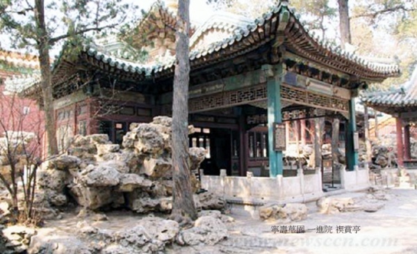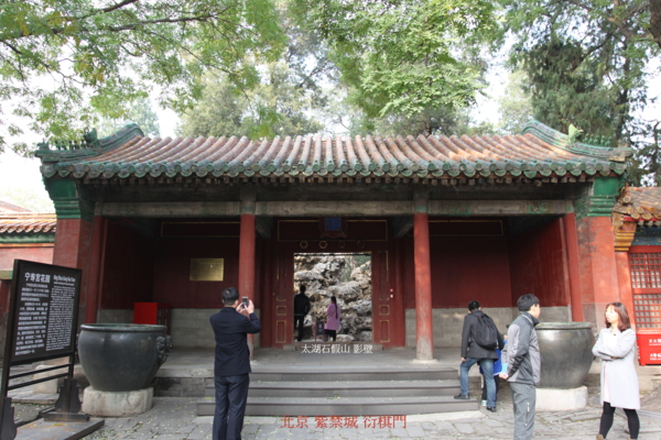 南端的園門衍祺門入園,迎面是一座人工假山(影壁),穿過山間曲折的通路,就進入了第一進院落.
