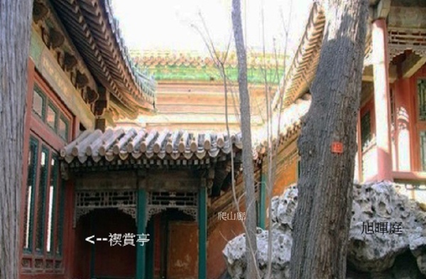 旭輝庭因座西面東,且高居於堆山之上,可迎日出,遂得乾隆御筆“旭輝”.