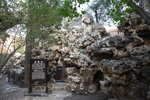 亦稱仙台,位於寧壽宮花園第一進院東側.清乾隆三十七年(1772年)建.台坐落於太湖石堆砌的假山之上,面積為7㎡,其主峰之上有一座承露台,這是乾隆帝沿襲漢武帝的宮室建制而作,台上曾放銅盤,以承仙露,四周圍以白石欄杆.承露台下的假山中有洞,內設石階通台上;台南側亦有山路可抵承露台.