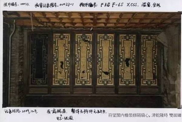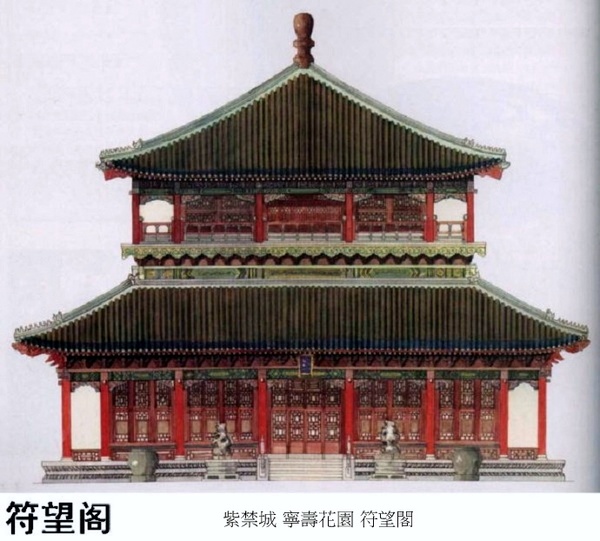 乾隆年間,每年臘月二十一日,皇帝在此地賞飯給王公大臣,得以入座者有御前大臣、御前行走、蒙古王公、貝勒等.嘉慶皇帝延續了這一典例.嘉慶皇帝也曾登臨此閣,並有《詠符望閣》之詩詠.符望閣 是寧壽宮花園中最高大的建築,登臨其上可北望景山諸亭,西望北海瓊島,晨昏四季,景色不同,一覽紫禁城內外的秀色.