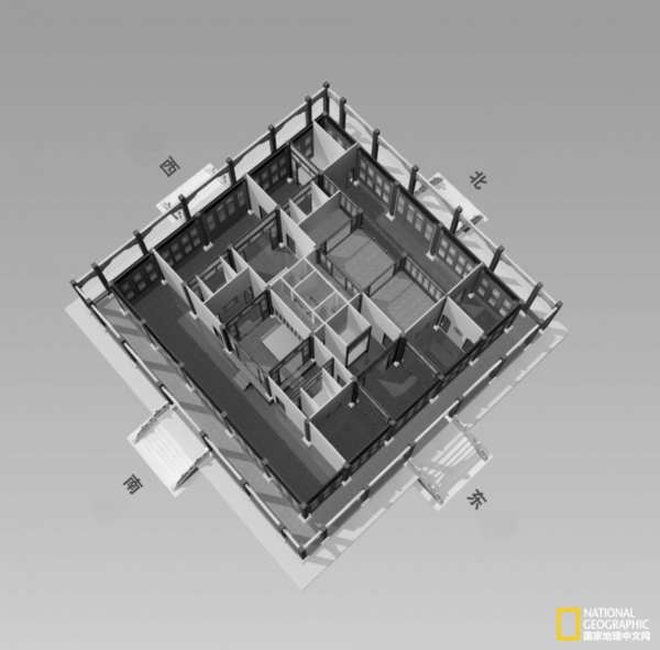 位於寧壽宮花園第一進院落的東南隅.其北側為抑齋.抑齋西側有遊廊相接,轉角處建一亭,名矩亭.遊廊西盡,轉而向南,圍成小院,自成一體.