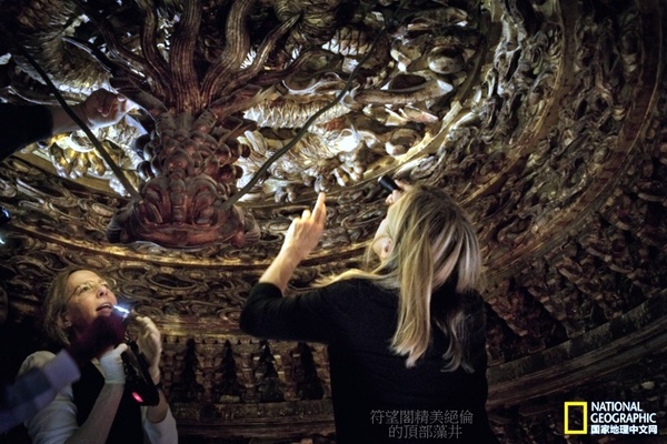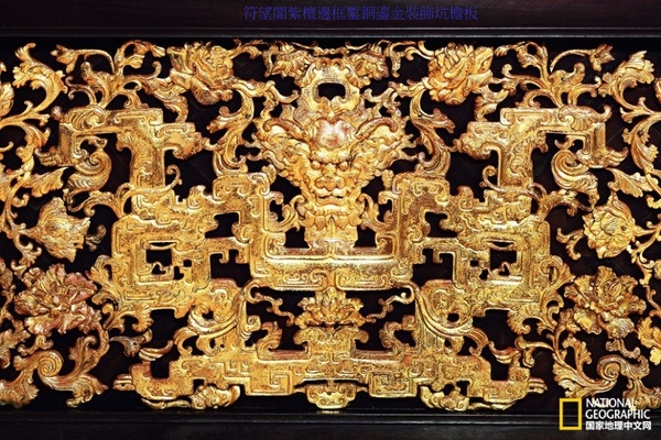 古華軒的裝修古樸素雅,尤其軒內天花別具一格,擯棄通常的彩繪裝飾方法,採用以卷草花卉為圖案的楠木貼雕,典雅高貴,氣度不凡.由於圖案凸起於天花板之上,在光影的變化中產生很強的立體感,雖不如彩繪貼金般光燦奪目,但其藝術韻味和裝飾效果卻獨具一格,別出心裁.