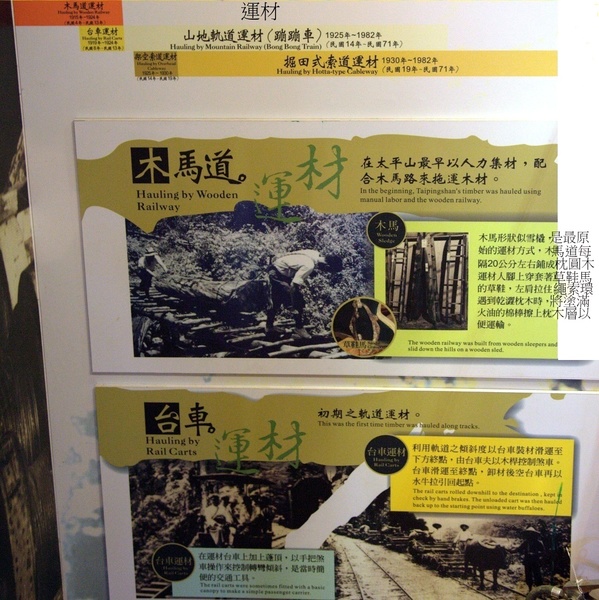 森林鐵路對於太平山的林業開發史如同一條輸送養份的臍帶,林場仰賴它來提供生機,同時也為宜蘭注入產業經濟的活血,運材的方式歷經不少演變,從人力運材、修羅集材、管流運材、伏地索道、台車、流籠索道、蹦蹦車、到森林鐵路的出現,每一段時期就彷彿林業歷史的一塊小小縮影.初時太平山林場是以人力、木馬、土滑道、木滑道將木材集中至太平山腳下的土場,再利用蘭陽溪水流將木材流放至員山,但這樣的方式容易損失木材且耗費大量人力,因此日本人也積極架設索道、舖設鐵路,以方便運輸.