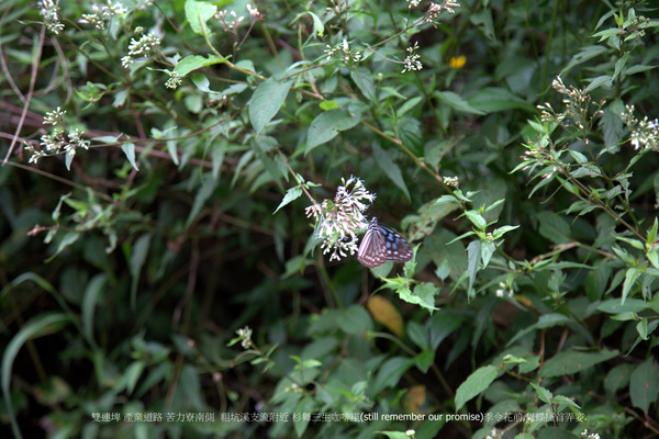 過雙連埤在產業道路東側雙連埤海陸鱒魚餐廳 午餐.杉舞三生咖啡座(still remember our promise)季令花前,舞蝶搔首弄姿.粗坑溪水鱒魚巡遊.農家和菜,臉盆煎蛋開場,餵了紅鳳菜’絲瓜等時蔬,土雞’鱒魚’香魚都跑不了, 餐後水芹(又名豆瓣菜、西洋菜、水茼蒿、水田芥、水蔊菜等)湯濯潄.